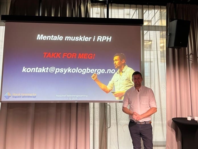 Så overtok psykolog Jan Martin Berge, dagens hovedforeleser, som under overskriften Mentale muskler i RPH snakket om viktigheten av å ivareta seg selv. Han tok blant annet utgangspunkt i internasjonale størrelser som fagpersonen Gabor Mate og baseballspilleren Lou Gehrig for å illustrer sine poenger. Hvilke personlighetstrekk gjør oss sårbare for stress og hvordan kan vi forebygge dette på best mulig måte? Hva er ditt toleransevindu, og hvordan klare å oppholde seg der. Forsamlingen virket inspirert og ga uttrykk for at de kjente seg igjen i det som ble sagt fra scenen.